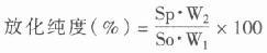 ③放射性核素反稀释法:取一定量(W1)已测定比活度(SO)的标记化合物(约0.1~10mg),用>1000倍化学量(W2)的纯载体稀释,充分混匀后反复纯化到比活度恒定不变(Sp),此标记化合物的放化纯度值应为: