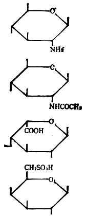 在这七类中,透明质酸有羧基,其它六类都有硫酸基,因此聚氨基糖都是多价的阴离子。